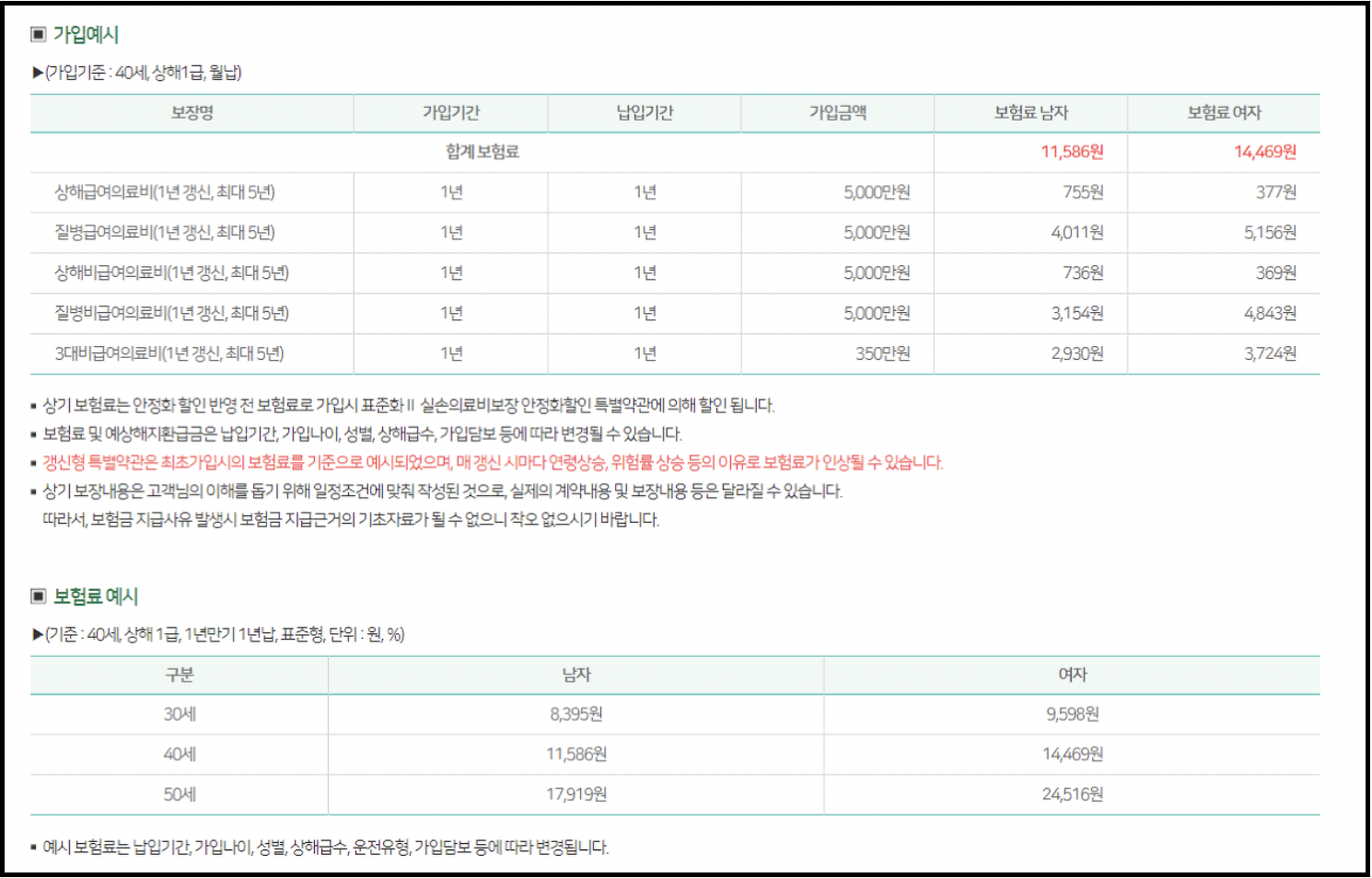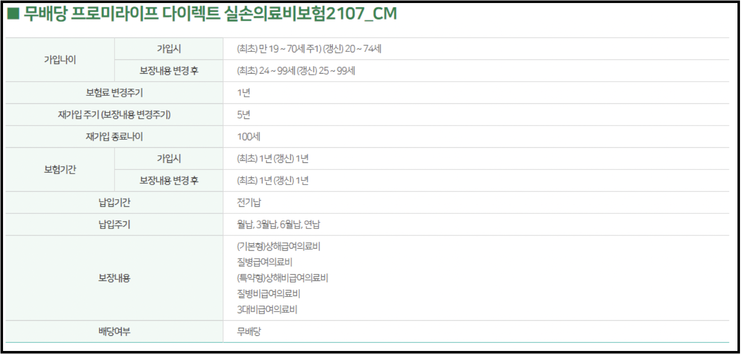 갱신주기 1년 | 비급여 모두 특약 |