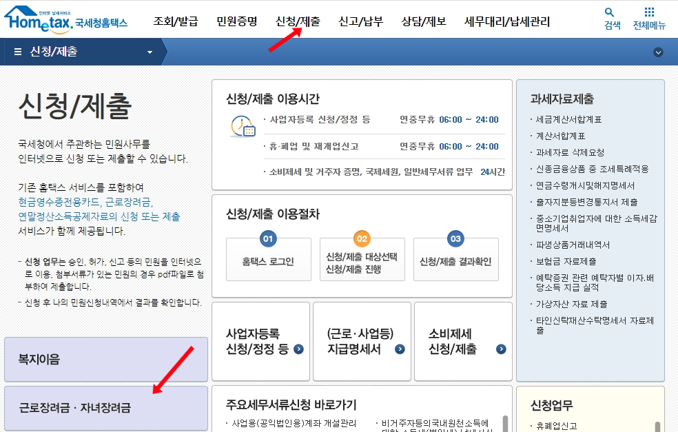 근로장려금 신청 방법 (ARS, 홈택스, 손택스)