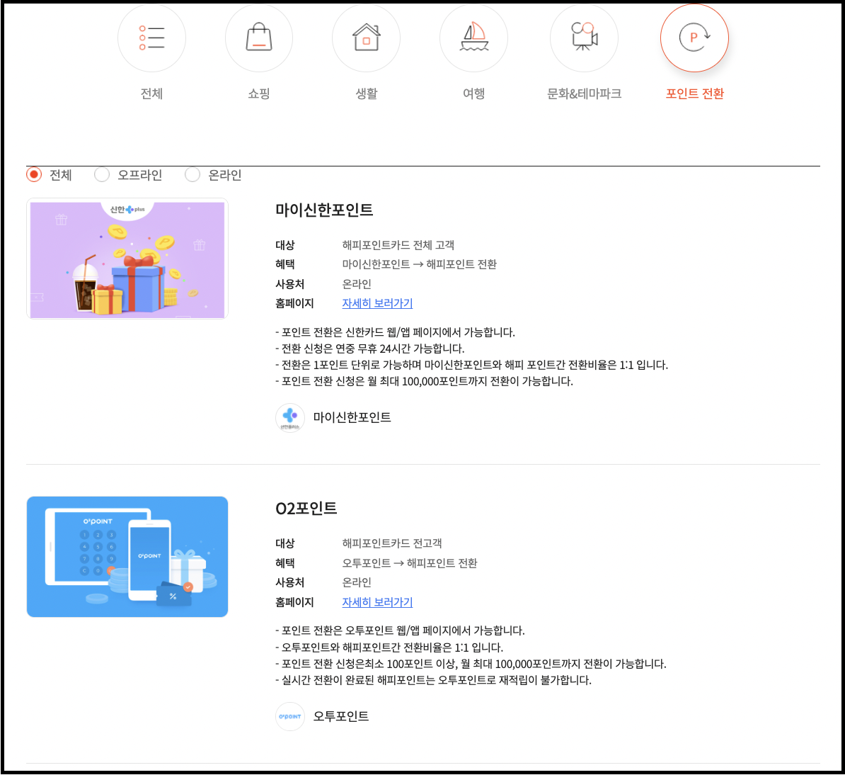 마이신한 포인트, 오투 포인트도 해피포인트로 모두 전환 가능합니다!