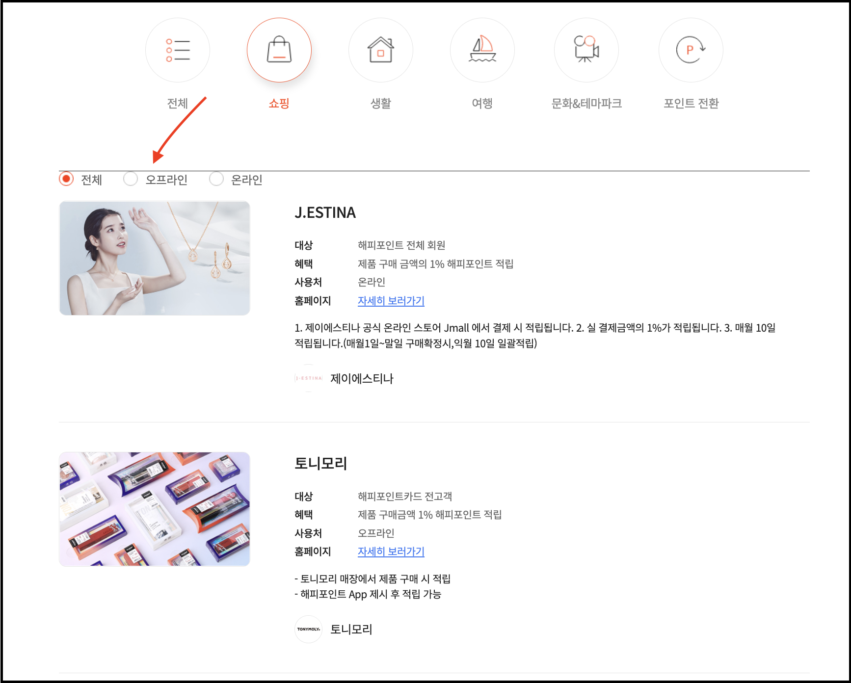 2. 해피포인트 적립/혜택에 관련된 내용을 먼저 살펴봅니다.