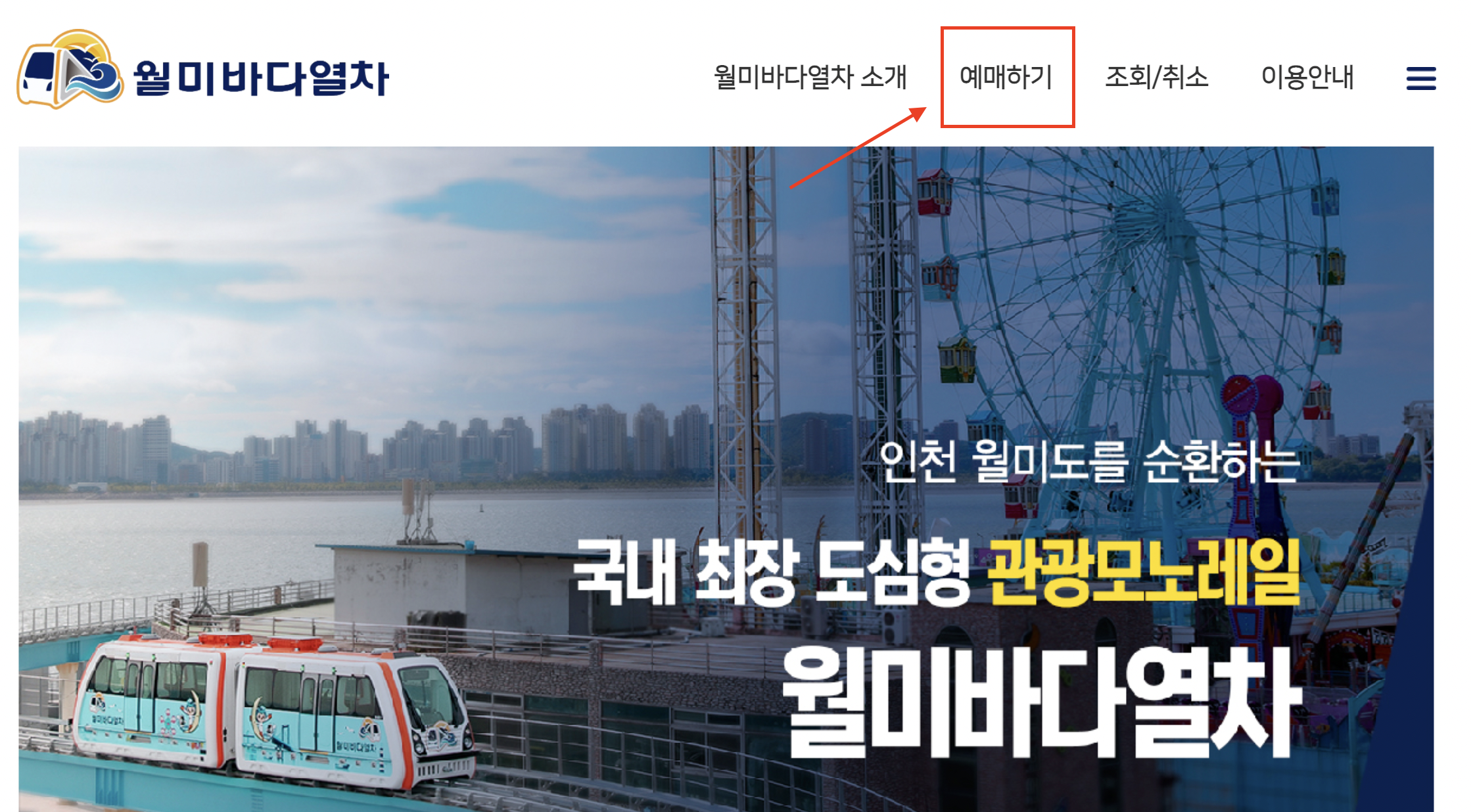 1. 월미바다열차 홈페이지 접속 (https://www.wolmiseatrain.or.kr/)
