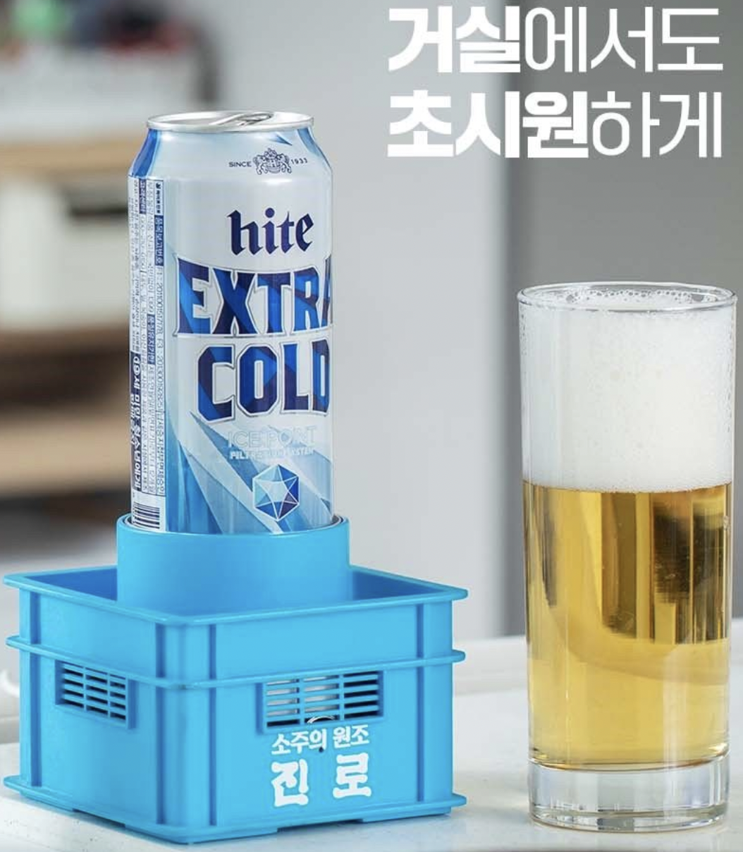 진로소주 디스펜서 함께 나온 제품은 바로 쿨러입니다. 날씨가 더운 날에는 맥주, 소주 실온에 두면 금방 식는데 쿨러에 꽂아두면 마시는 내내 시원하게 마실 수 있습니다.