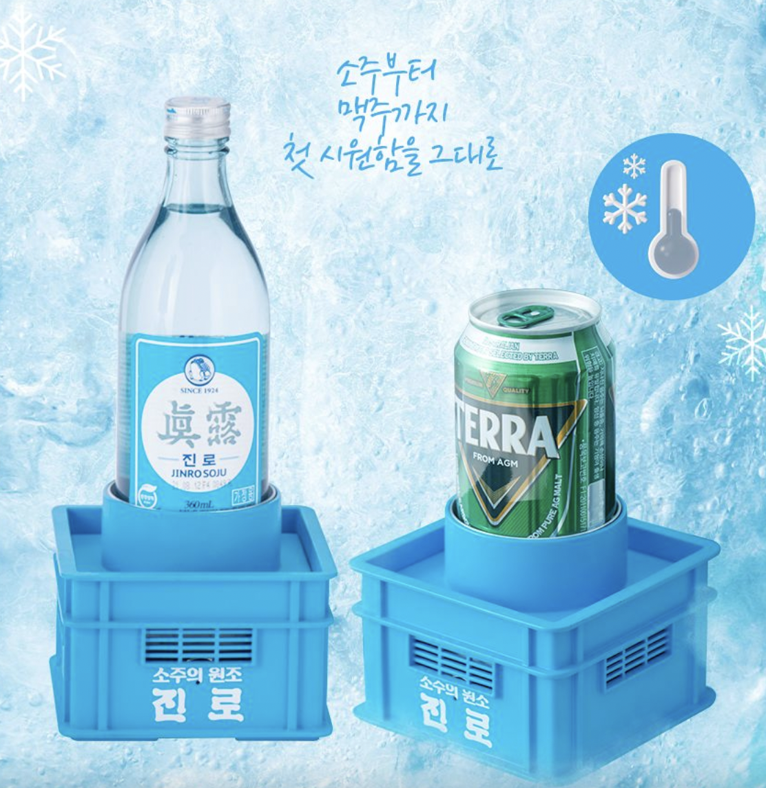 진로소주 디스펜서 함께 나온 제품은 바로 쿨러입니다. 날씨가 더운 날에는 맥주, 소주 실온에 두면 금방 식는데 쿨러에 꽂아두면 마시는 내내 시원하게 마실 수 있습니다.