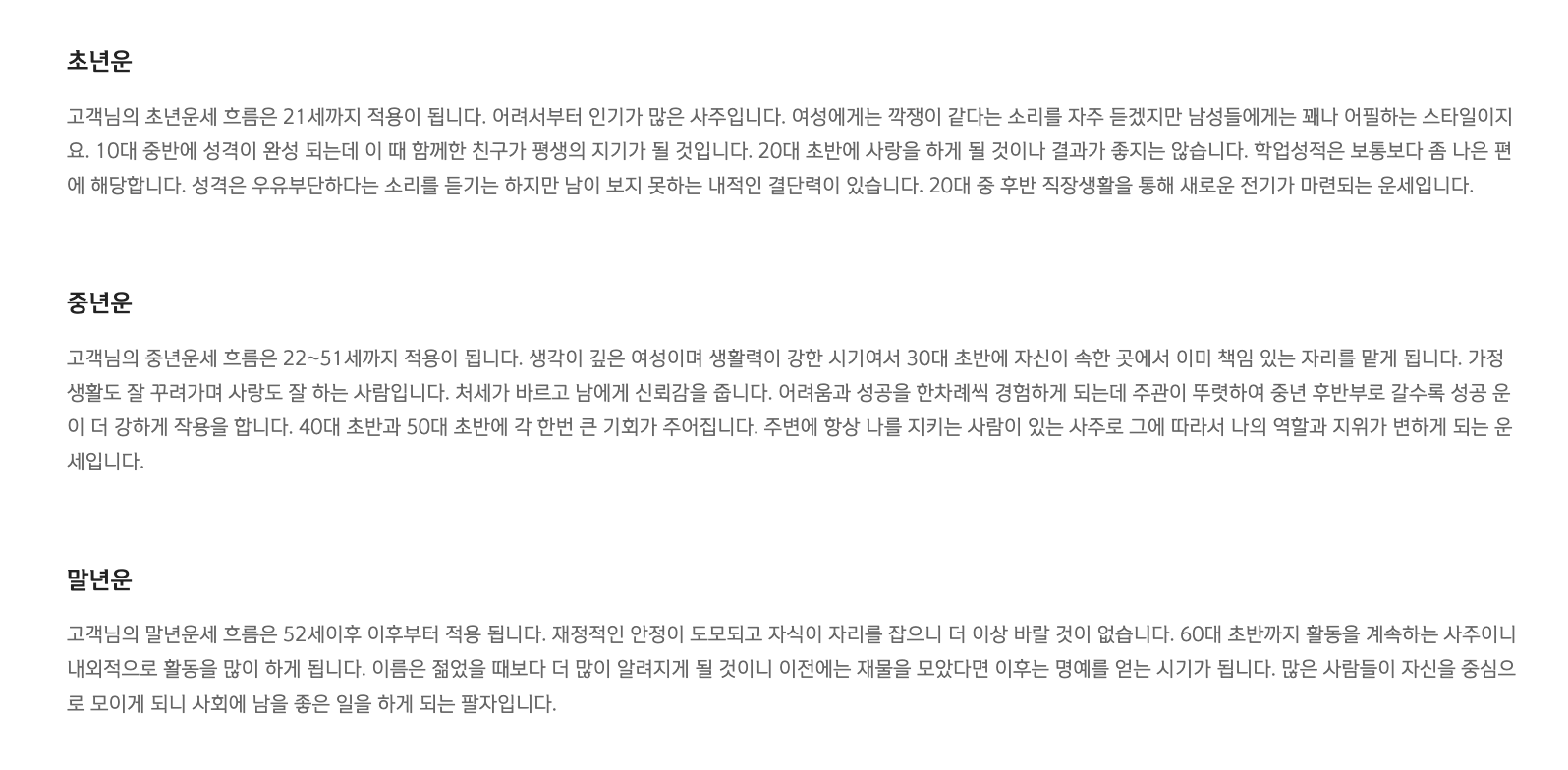 저의 평생운세인데 초년운은 어느정도 맞는 것 같습니다. 29살에 첫직장을 퇴사한 후 새롭게 이직하고, 사업을 시작했는데 인생이 새롭게 바뀌고 있기 때문입니다.