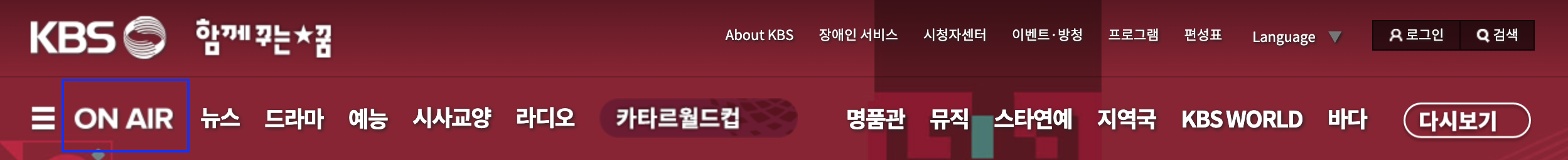 KBS 홈페이지 접속 후 ON AIR 클릭하면 바로 축구 중계 시청 가능합니다.