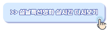 지금까지 2023설날특선영화 라인업 알아보았습니다. 해당 영화는 저작권이 있어서 TV에서 다시보기는 어렵습니다. 인터넷 OTT나 홈페이지를 통해서 다시보기 할 수 있습니다.