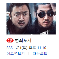 MBN 아이스로드, EBS1 분노의질주 더오리지널, SBS 범죄도시가 방영합니다. 이중 가장 인기가 있는 영화는 범죄도시로 여러번 봐도 마동석, 윤계상의 연기력에 감탄하게됩니다. 재난 영화를 좋아하는 분들이라면 영화 아이스로드도 추천합니다. 더 다양한 영화는 아래를 참고하시길 바랍니다.