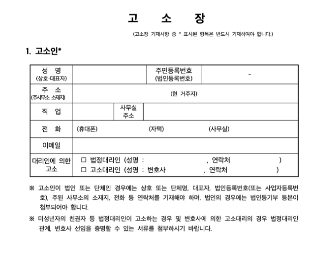1. 고소장은 모두 직접 자필로 작성해야한다는 점을 참고하시길 바랍니다.