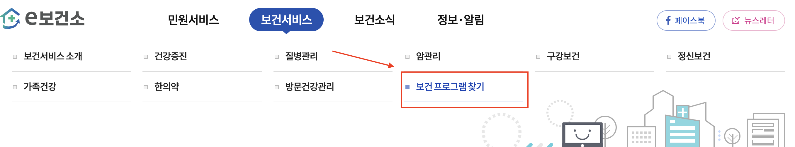 2. 상단의 보건서비스-보건프로그램 찾기 카테고리르 선택합니다.