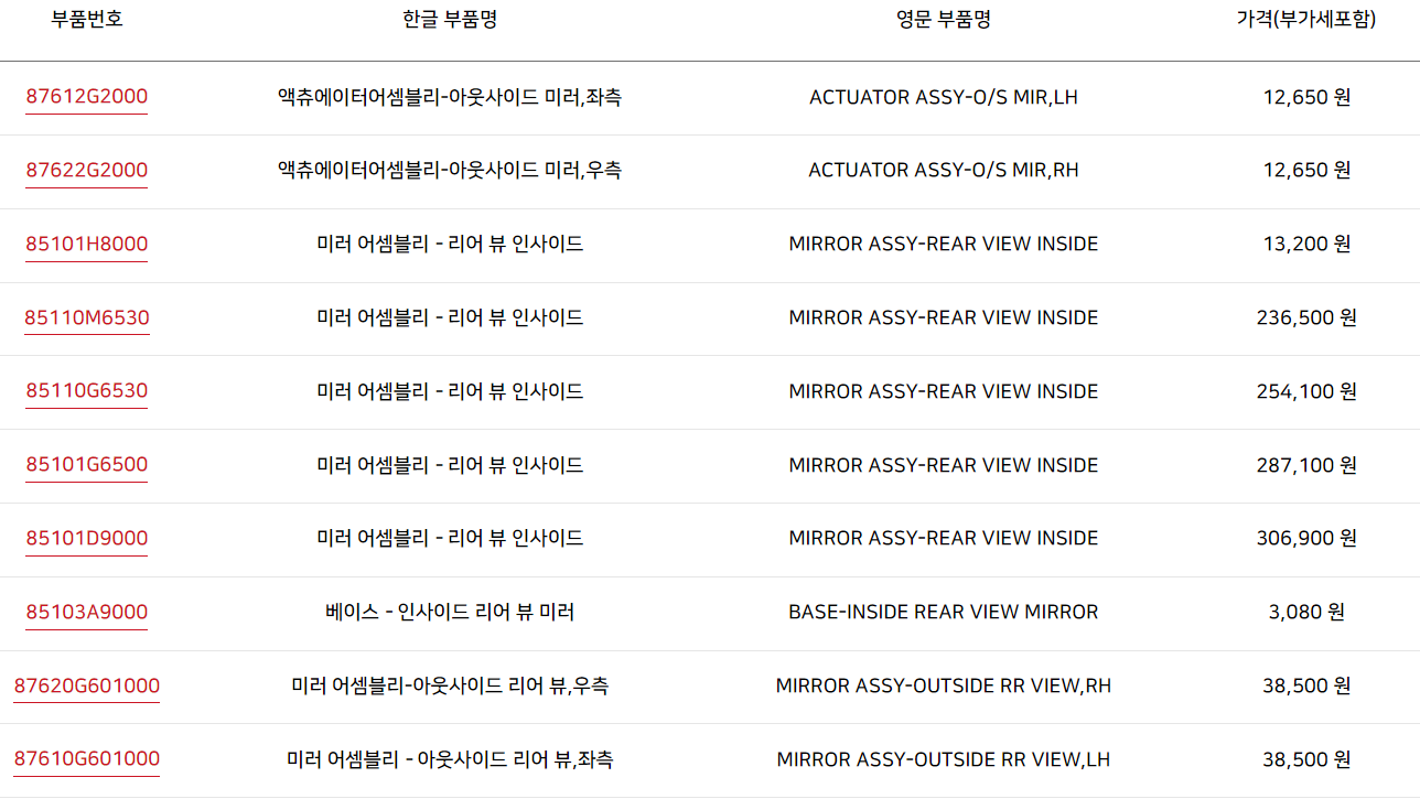 부품 가격은 매일 달라질 수 있으며 대리점마다 가격이 다르므로 이점 참고하여 부품조회 해보시길 바랍니다.