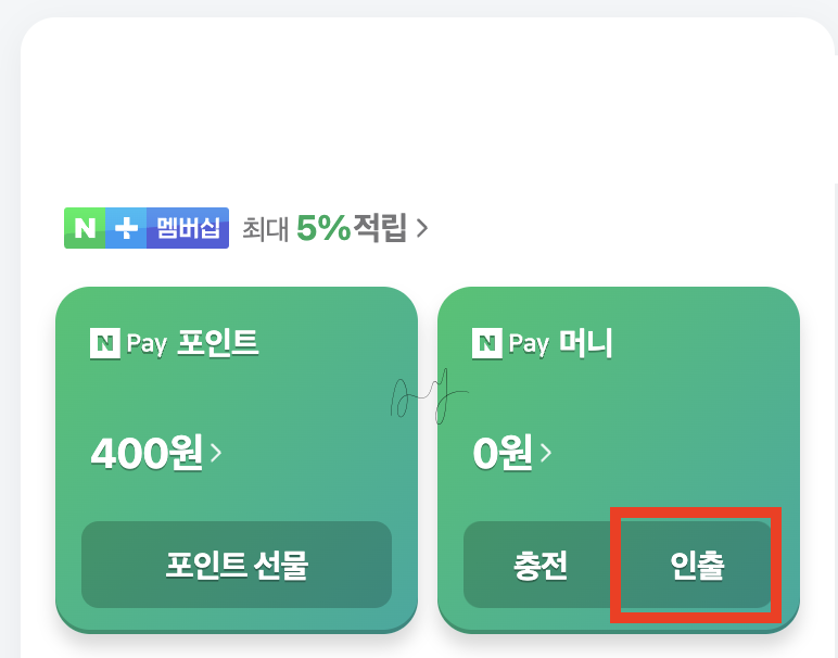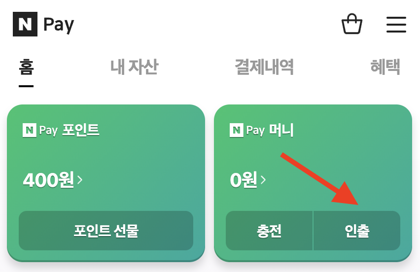 3. N Pay 머니 '인출'을 선택합니다.
