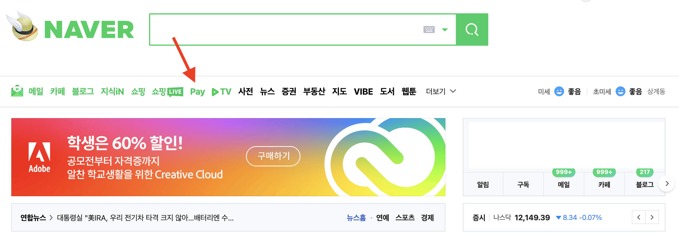 2. 상단 카테고리 중 'PAY'를 선택합니다.