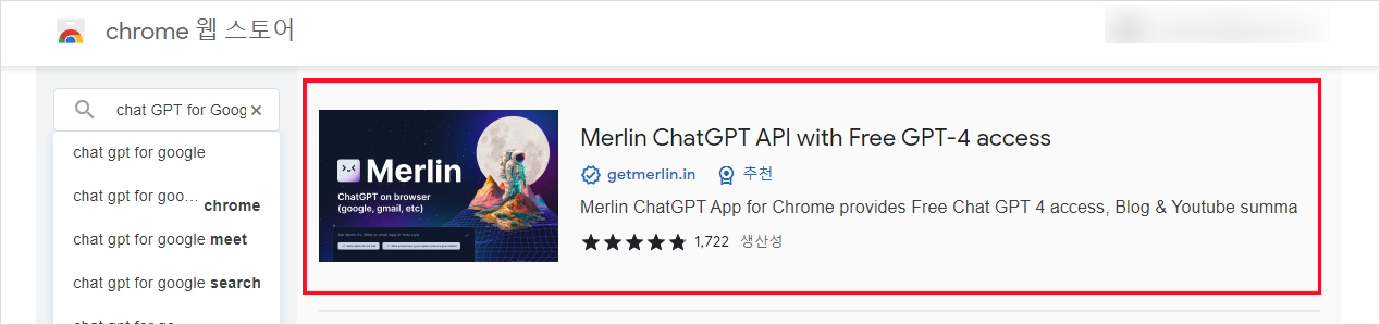 확장 프로그램으로 설치하면 구글 검색시 자동으로 프로그램이 나와서 빠르게 원하는 정보를 습득할 수 있다는 것이 가장 큰 장점입니다.