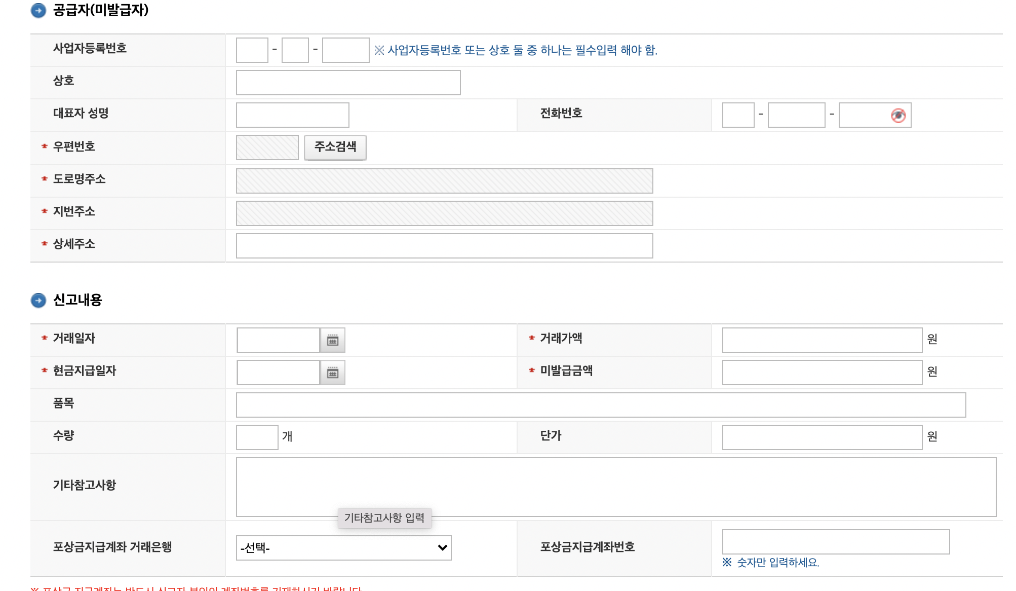 - 포상금 지급계좌는 반드시 신고자 본인의 계좌번호를 기재하시기 바랍니다.