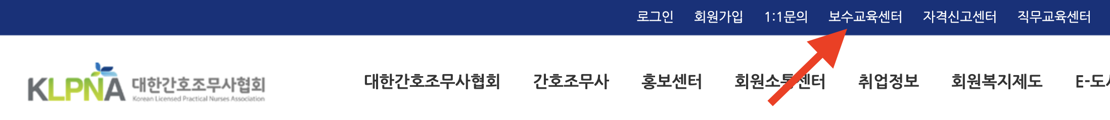 2. 로그인 후 홈페이지 상단의 '보수교육센터'를 선택합니다.