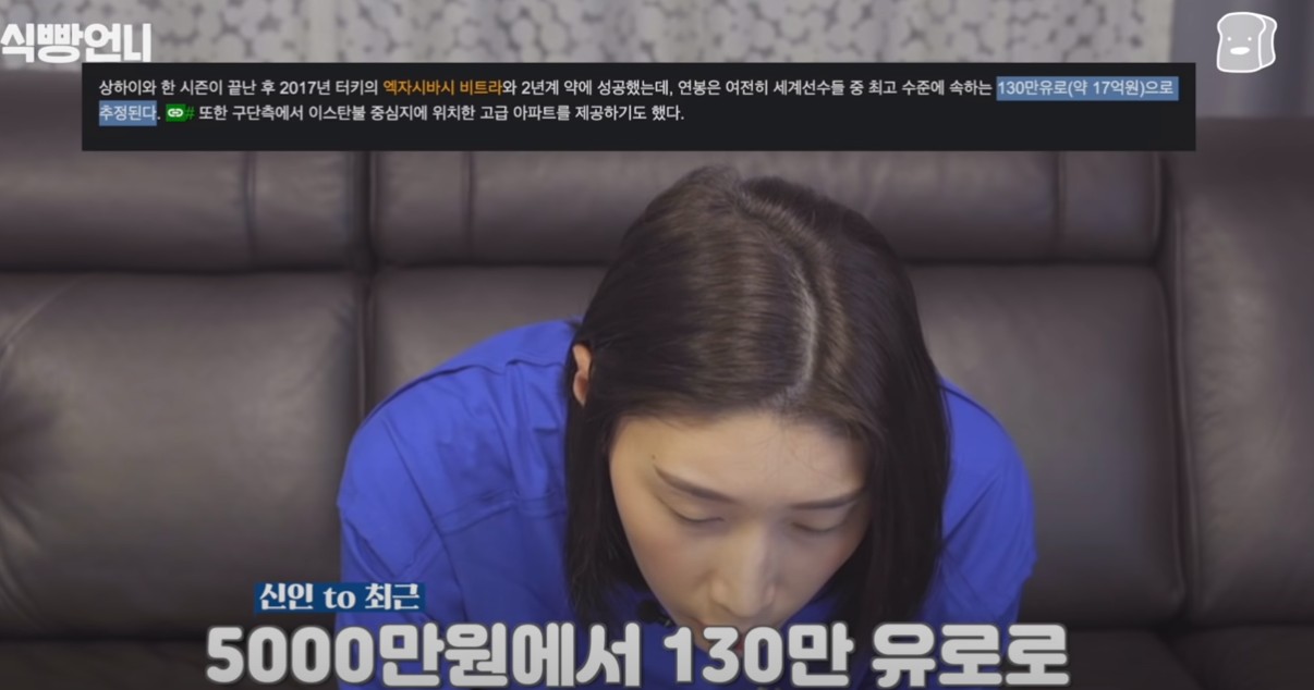 2011년부터 2017년 시즌은 총 6 시즌으로 6년간 대략 82억 원의 수입을 기록한 김연경 선수는 이후 중국리그로 이적했습니다. 17-18 시즌 연봉만 한 해에 15억입니다. 김연경 선수의 유튜브 영상을 확인해보면 18-19 시즌에 받은 연봉이 세계 최고 수준이었다고 전달했습니다.