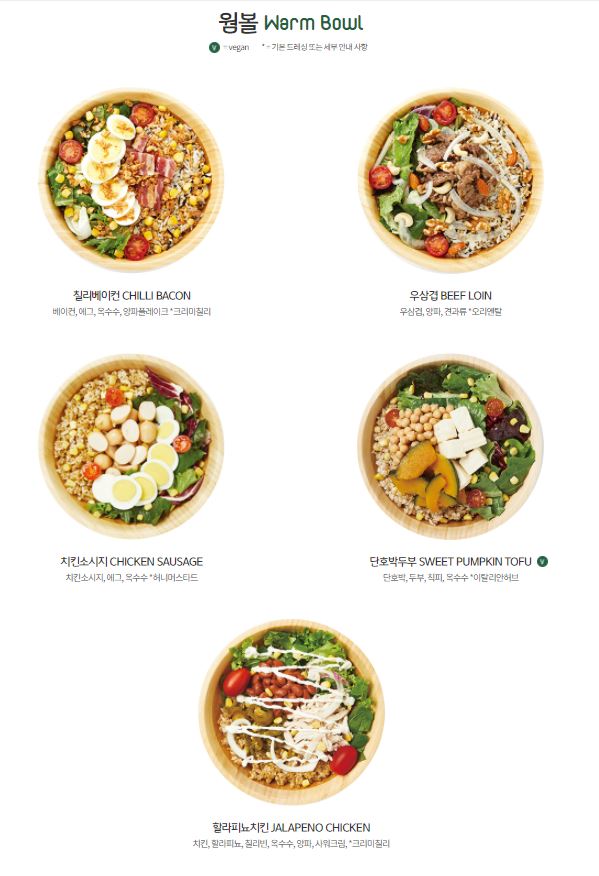 샐러디 메뉴 크게 4가지로 나누어집니다. 샐러디, 웜볼, 샌드, 랩, 웜랩으로 다이어트를 하거나 베지터리안이 먹기에 부담이 없는 메뉴로 구성되어있습니다. 먼저 샐러디에 대해 자세하게 알아보겠습니다.