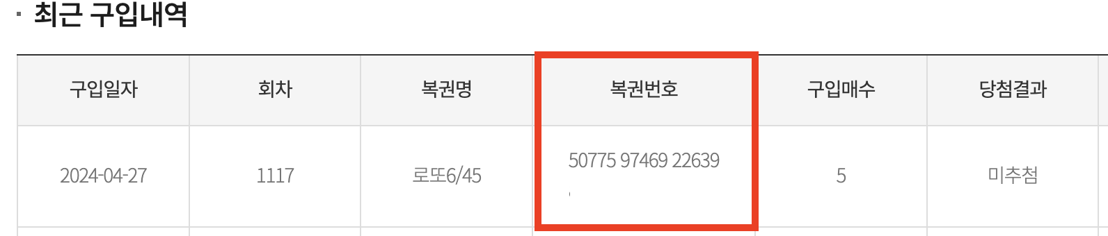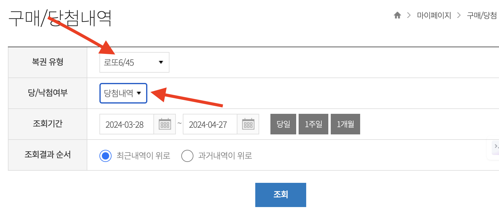 만약 당첨이 되었다면 당첨내역으로 조회했을 때 당첨이 된 것을 확인할 수 있습니다.