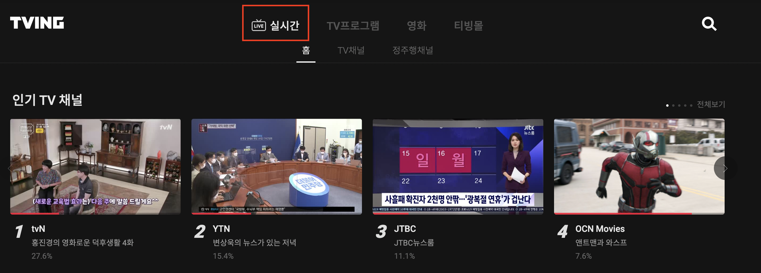 TVING 홈페이지 접속→실시간 TV->슬기로운 의사생활 시즌 2 시청