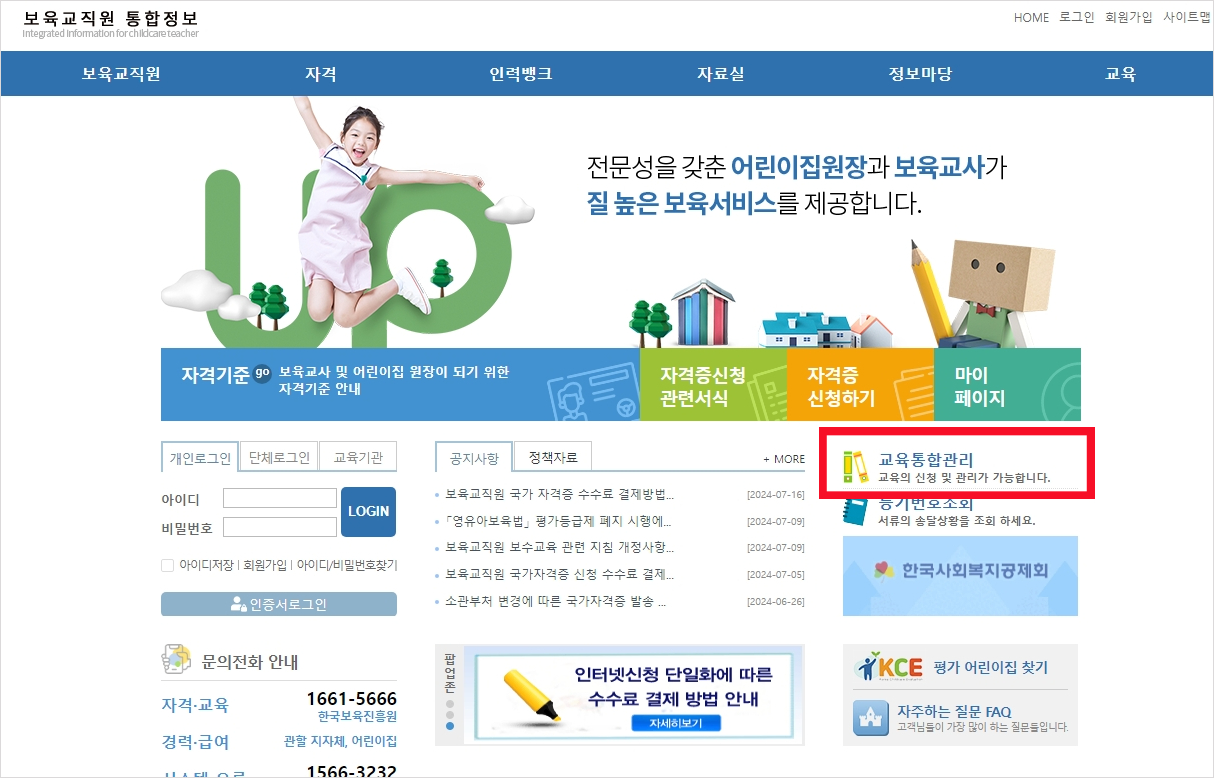 1. 보육교직원 통합정보 홈페이지에 접속합니다.