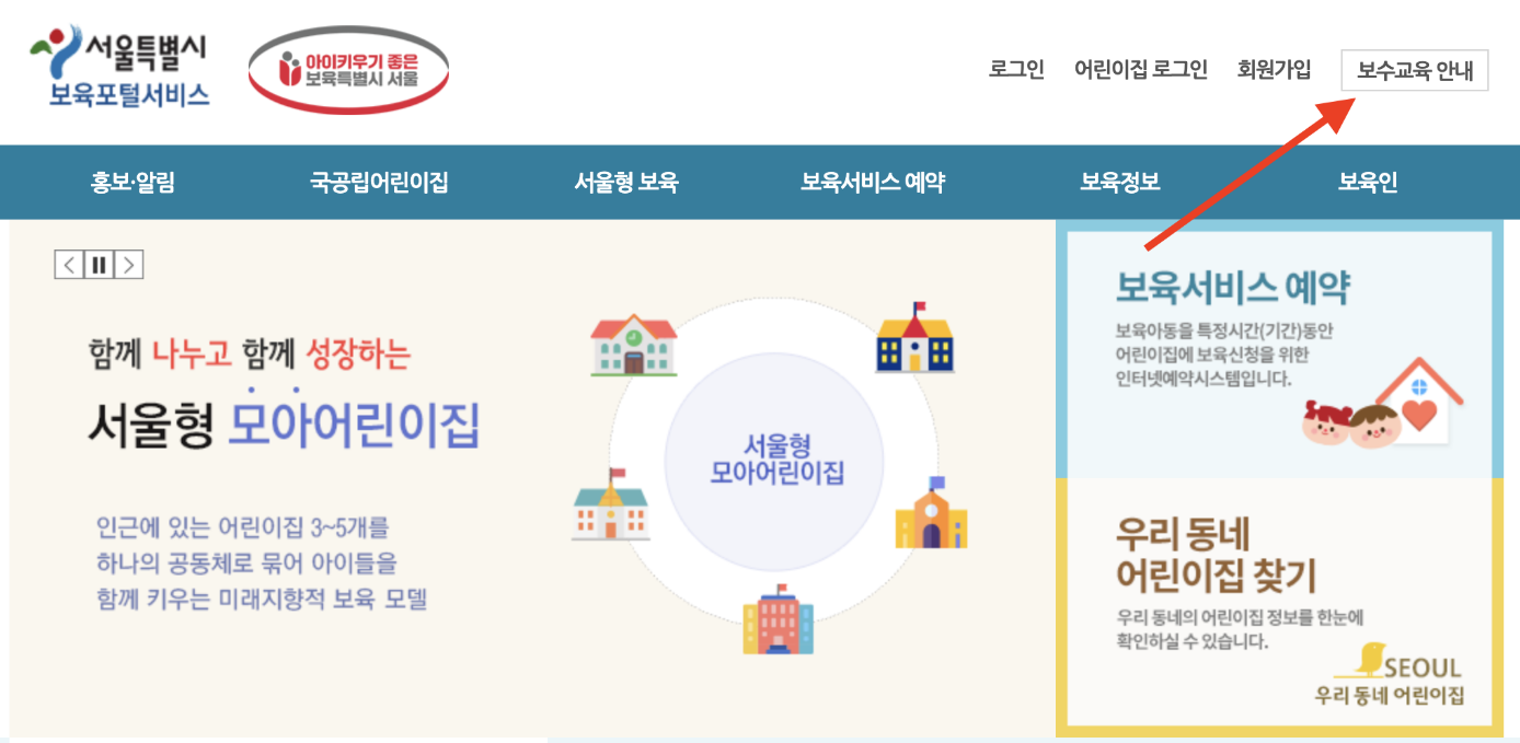 보육교사 장기 미종사자 직무교육 신청 방법(서울)