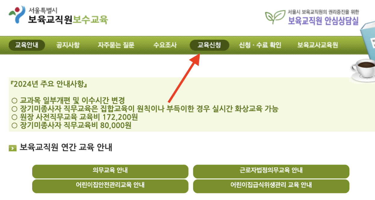 보육교사 장기 미종사자 직무교육 신청 방법(서울)
