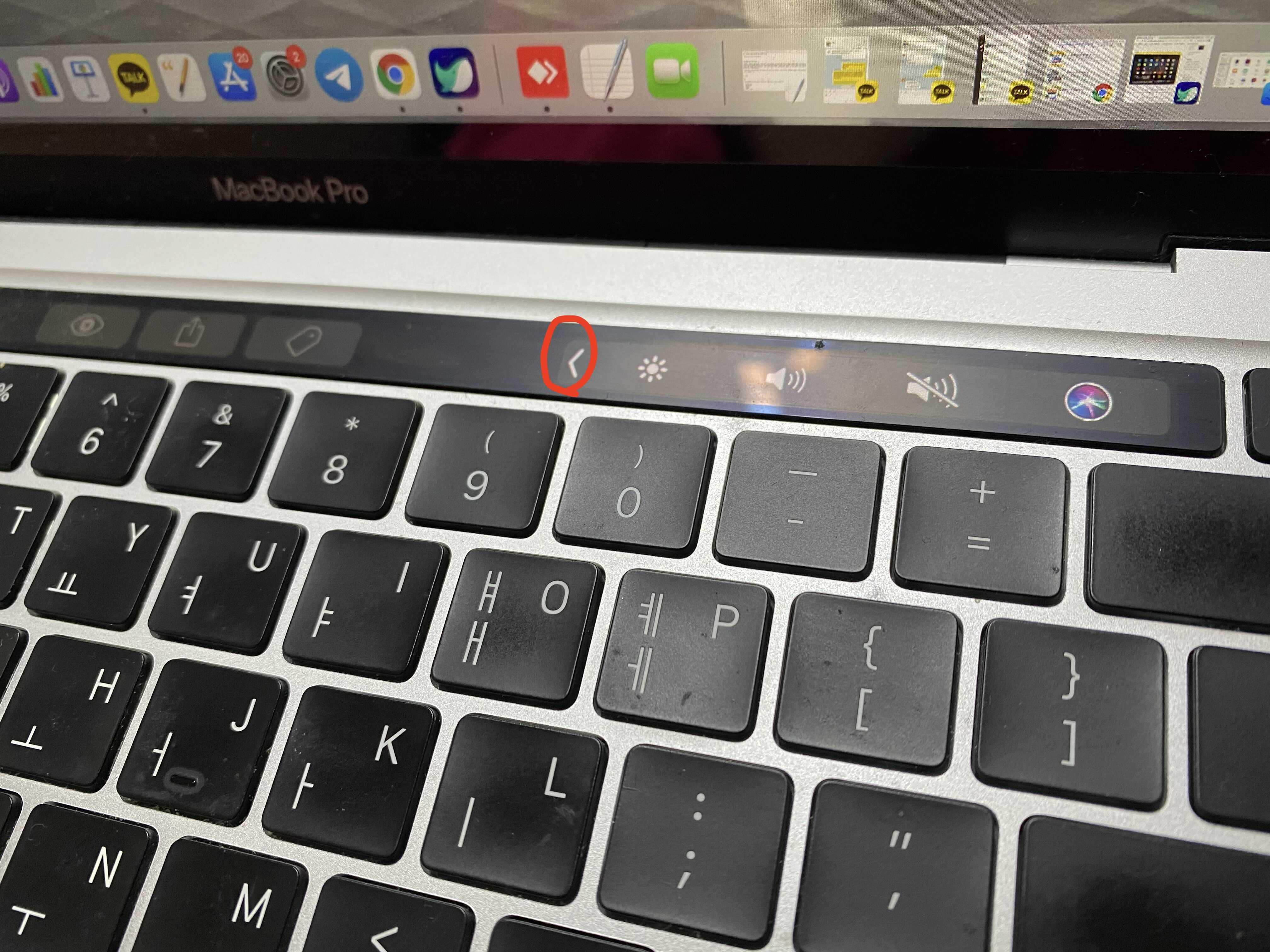 먼저 맥북 터치 바에서 화살표 < 방향을 터치합니다.
