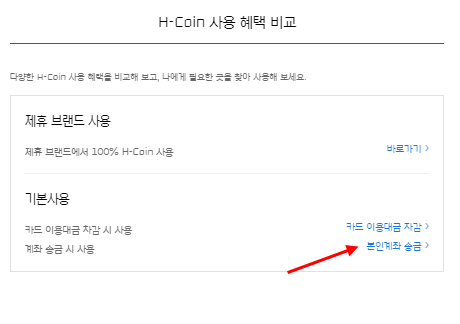 6. 위 화살표에 나와있는 H-Coin 사용 혜택 비교를 선택합니다.