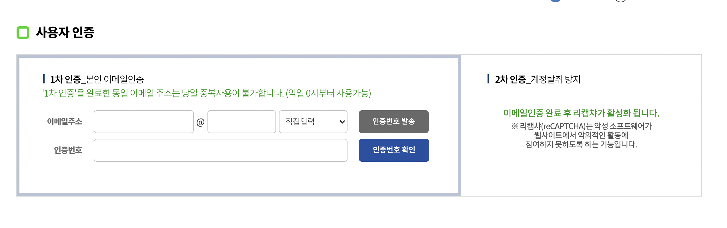 조회하기를 누르면 사용자 인증(이메일 인증)을 받으라고 나옵니다.