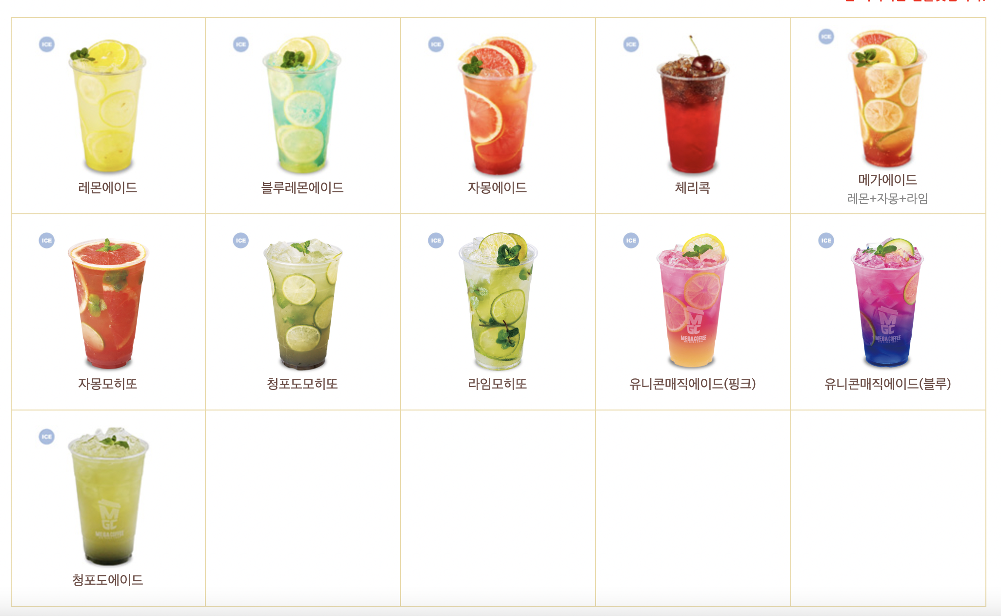메가커피 메뉴